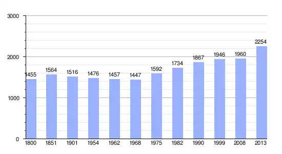 Los datos demográficos contemplados en este gráfico de la comuna de Gennes[4] se han cogido de 1800 a 1999 de la página francesa EHESS/Cassini, y los demás datos de la página del INSEE.[5]