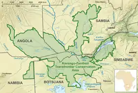 - Área de conservación Kavango-Zambeze, parque transfronterizo de 520.000 km² en las cuencas de los ríos Okavango y Zambeze que abarca cinco países: Angola, Botsuana, Namibia, Zambia y Zimbabue.