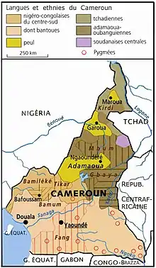 En Camerún conviven unos 250 grupos étnicos diferentes que forman cinco grandes regiones culturales:[5]