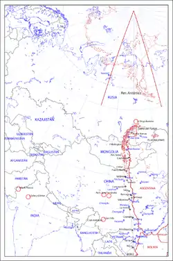 - 5308 km[4] con Argentina —la tercera frontera terrestre más larga del mundo, luego de la frontera entre Estados Unidos y Canadá (8893 km) y la de Rusia con Kazajistán (6846 km)—.[4]