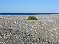 Costa acantilada en el norte (glint) y baja y arenosa en el oeste.