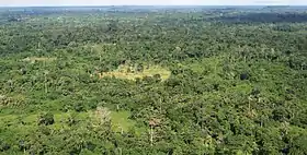 Liberia se encuentra en la zona del cinturón de bosque lluvioso tropical de África Occidental. La mayor parte del país corresponde a esta zona excepto una estrecha franja costera donde los manglares conviven con la sabana costera. Teniendo en cuenta las condiciones climáticas y el tipo de suelo se puede encontrar tres tipos de vegetación. La sabana costera consiste en un prado de poca altura con árboles aislados y escasos, entre ellos palmeras Raphia y cocoteros. El cinturón selvático se divide en zona de bosque perenne y zona de bosque semicaduco húmedo. El bosque perenne recibe más de 4.400 mm de lluvia anuales, no tiene un periodo de caída de la hoja y algunos árboles alcanzan los 50 m de altura. El bosque semicaduco es una transición hacia el bosque caduco que se encuentra en Costa de Marfil, con una larga estación seca de 5 a 6 meses que fuerza a muchas especies a perder las hojas. Por último, la sabana septentrional comprende la zona de hierbas altas del noroeste yuna pequeña porción en el nordeste, en el condado de Nimba. En estos lugares, la vegetación es forzada en muchos casos por la quema y el aclarado con propósitos agrícolas.[4]