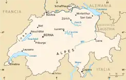 Suiza ((en alemán, Schweizerische Eidgenossenschaft; en francés, Confederation Suisse; en italiano, Confederazione Svizzera; en romanche, Confederaziun Svizra) es un país europeo, que se encuentra en el centro-oeste de dicho continente. Con una superficie total de 41 290 km², limita al oeste con Francia, al sur y al este con Italia, al este con Liechtenstein y Austria y al norte y noreste con Alemania.