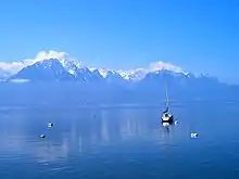 Hay numerosos lagos naturales en Suiza (lago de Ginebra, en el Ródano; lago de Constanza, en el Rin; lago Mayor, en el río Tesino) y lagos artificiales (Sihlsee, Grande Dixence). Los lagos y los embalses contienen el 50 % del agua almacenada, los glaciares el 28 %, el agua subterránea 20 % y los ríos 2 %.[2] Tanto el Rin como el Ródano atraviesan en su recorrido un gran lago, que en ambos casos es fronterizo: el lago de Constanza, fronterizo con Austria y Alemania, para el Rin; y el lago Lemán, fronterizo con Francia, para el Ródano.