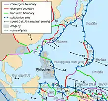 El borde tectónico continúa activo, y en Taiwán se registran entre 15.000 a 18.000 terremotos cada año, de los cuales entre 8.000 y 1.000 son percibidos por las personas. El terremoto más catastrófico más reciente fue el terremoto de Chichi de 1999, con una magnitud de 7.3, el cual tuvo lugar en el centro de Taiwán el 21 de septiembre de 1999 y mató a más de 2.400 personas.[6][7] El 4 de marzo de 2010, a aproximadamente la 01:20 UTC, un terremoto de 6.4 de magnitud azotó el sur de Taiwán.[8]