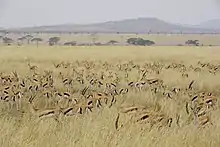 En el Serengeti, cerca de Kenia, las alturas oscilan entre 1100 y 2000 m, con un clima estacional de sabana, más seco al sudeste, y temperaturas a 1400 m entre 14 y 29.oC. En Ngorongoro, las alturas son mayores; a 2000 m caen poco más de 900 mm (máximo en abril de 225 mm), con una época seca y un poco más fresca entre junio y octubre;[5] las temperaturas oscilan entre los 8.oC y los 23.oC todo el año. La garganta de Olduvai, entre ambos parques, es muy árida.