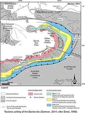 Timor Oriental se encuentra a caballo de un arco insular conocido como arco de Banda, que existe en el este de Indonesia, en la zona de confluencia de tres placas importantes, la placa Indoaustraliana, la placa del Pacífico y la Placa euroasiática. En esa conjunción, se han formado varias placas menores. La mayor es la placa del mar de Banda, que se encuentra al norte de la placa australiana y se introduce debajo de esta, provocando la emergencia de islas a ambos lados. En el sur, donde se pliega la placa australiana, se encuentra el arco de Banda exterior, que forma islas no volcánicas. Una placa menor, la placa de Timor, al sur de la placa del mar de Banda, se introduce bajo la placa australiana, al sur, y se alza, dando lugar a la isla de Timor, pero al norte de la subducción se forma un arco de islas volcánicas, el arco de Banda interior, del que forma parte la isla volcánica de Atauro, que no tiene volcanes activos.