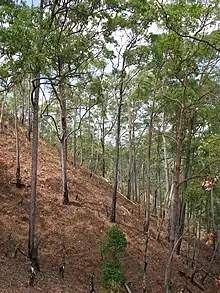 El este de la isla de Timor es muy accidentado, con cumbre en el monte Tatamailau, de 2963 m, en el centro de una elevada meseta. Muchas de las partes más empinadas están cubiertas de bosquetes de sándalo, que no suelen superar los diez metros de altura. En las tierras bajas hay matorrales y praderas, junto con cocoteros y eucaliptos. Hay numerosos torrentes de montaña y manantiales. Entre la fauna se encuentra el loris de Sonda, monos, ciervos, civetas, serpientes y cocodrilos.[3]