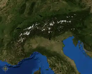 El resto del límite meridional de los Alpes está claramente marcado por el río Po y su cuenca.