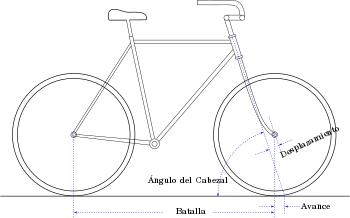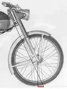 En las bicicletas, el desplazamiento de la horquilla también se denomina arrastre de la horquilla. Las bicicletas de carreras en ruta suelen incorporar un desplazamiento de entre 40 y 50 mm.[6]