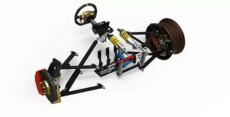 El término geometría de la suspensión designa al conjunto de características dimensionales y cinemáticas del sistema de conexiones mecánicas entre la masa suspendida (la carrocería) y las ruedas de un vehículo. Igualmente, define los grados de libertad de la suspensión.