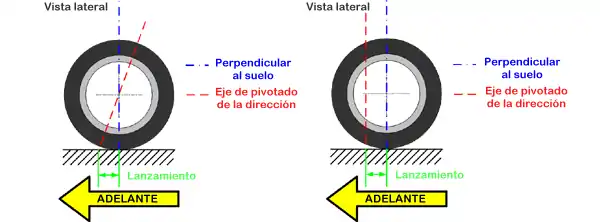 El lanzamiento genera una auto-alineación de las ruedas directoras en el eje de desplazamiento del vehículo. El ángulo de lanzamiento se mide en grados y minutos mientras que el avance del lanzamiento se mide en centímetros o milímetros. Después del paralelismo, es el reglage más frecuente en los automóviles normales— pero no siempre es regulable.