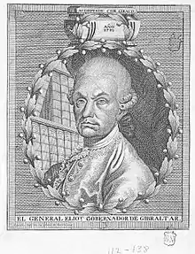 En la carrera militar de George Eliott destaca su etapa como gobernador de Gibraltar desde su nombramiento el 25 de mayo de 1777 sucediendo a Robert Boyd hasta julio de 1790 cuando hubo de hacer frente a la defensa de Gibraltar ante el Gran Asedio llevado a cabo desde 1779 hasta 1783 por parte de las tropas hispano-francesas.[1]