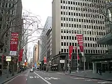 - Wynyard: La zona que rodea George Street desde King Street en el sur hasta Alfred Street en el norte está ocupada fundamentalmente por oficinas de grandes corporaciones e instituciones financieras, intercaladas con comercios, grandes hoteles, bares e instalaciones de ocio. Una importante calle de este barrio es Martin Place, donde se encuentran el Cenotafio de Sídney y la Sydney General Post Office. La estación de Wynyard se encuentra en la parte norte de este barrio.