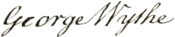 George Wythe (Hampton (Virginia), 3 de diciembre de 1726 - Richmond (Virginia), 8 de junio de 1806), primer profesor de derecho estadounidense, destacado académico y juez de Virginia. Nacido en una rica familia de plantadores de Virginia, Wythe estableció una carrera legal en Williamsburg (Virginia), después de estudiar con su tío. Se convirtió en miembro de la Casa de los Burgueses en 1754 y ayudó a supervisar los gastos de defensa durante la Guerra franco-india. Se opuso a la Ley de Estampillas de 1765 y otros impuestos británicos impuestos a las Trece Colonias. Representó a Virginia en el Segundo Congreso Continental, También fue delegado a la convención constitucional de 1776 de Virginia y ayudó a diseñar el Escudo de Virginia. Delegado de la Convención de Filadelfia de 1787 y formó parte de un comité que estableció las normas y procedimientos de la convención. Abandonó la convención antes de firmar la Constitución de los Estados Unidos para atender a su esposa moribunda. Fue el primero de los siete signatarios de Virginia de la Declaración de Independencia de los Estados Unidos y fue elegido para la Convención de Ratificación de Virginia y ayudó a garantizar que su estado de origen ratificara la Constitución.