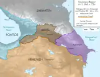 Mientras que la Georgia occidental con el nombre de Lazicum fue muy latinizada, especialmente en los tiempos de Trajano,[2] la parte oriental solamente estuvo bajo protección romana, siendo prácticamente independiente hasta la conquista árabe en el siglo VII d. C.