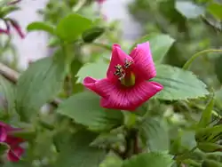 Es un arbusto que puede alcanzar los 4 metros de altura. Las hojas tienen color verde, las láminas de las hojas dentadas de hasta 3,8 centímetros de largo. Las flores son de color rojo o magenta. Los pétalos superiores son erectos, pero las dos inferiores se curvan bajo. La forma de la flor indica que está polinizada por aves, siendo la única entre los geranios.[2][3]