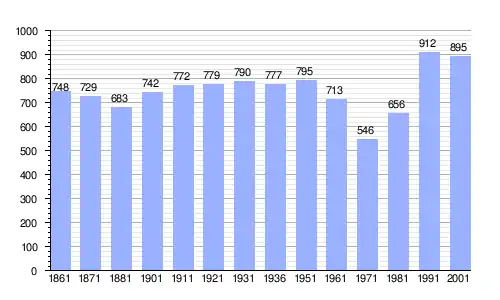 Gráfica de evolución demográfica de Gerre de' Caprioli entre 1861 y 2001 |