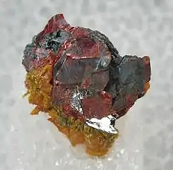 La forma pura es un sulfuro de antimonio y arsénico. Es característico que el color rojo-sangre que tiene se encuentra como empañado por una iridiscencia entre verde y púrpura.