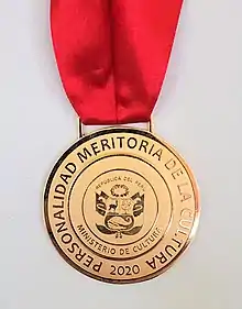 - Gianfranco Annichini Somalvico recibe el diploma y la medalla que lo distinguen como Personalidad Meritoria de la Cultura. dafo.cultura.pe