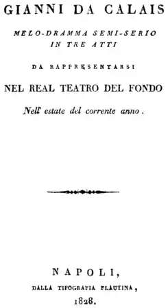 Gianni di Calais (título original en italiano; en español, Juan de Calais) es un melodramma semiserio en tres actos con música de Gaetano Donizetti y libreto de Domenico Gilardoni. Se estrenó el 2 de agosto de 1828 en el Teatro del Fondo de Nápoles, Italia. Buena parte del éxito de la ópera se debió a la interpretación de los dos célebres cantantes Antonio Tamburini, para el cual Donizetti había escrito el papel de Rustano, y Giovanni Battista Rubini, que representó al protagonista.