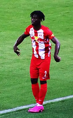 ![]() Mensah durante un partido entre Red Bull Salzburgo y Chelsea. | ||