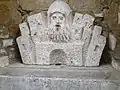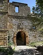Giechburg cuenta con numerosas figuras en forma de esculturas, grabados en relieve o gárgolas, incluyendo varios escudos de armas que coronan las distintas entradas.