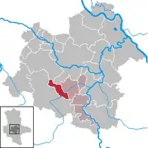Se encuentra ubicado a poca distancia al oeste del río Saale, un afluente del río Elba.