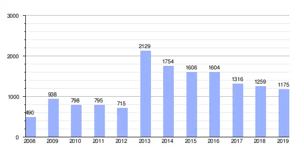 Gráfica de evolución de Deuda viva del Ayuntamiento de Gilena entre 2008 y 2019 |