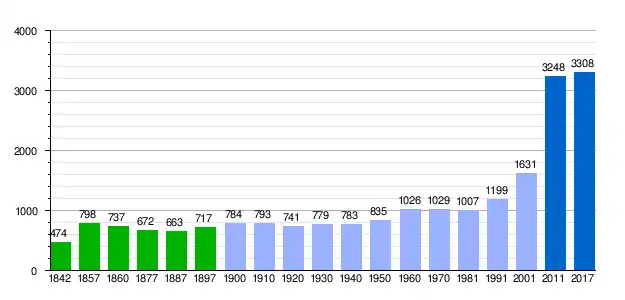Población de derecho (1842-1897, excepto 1857 y 1860 que es población de hecho) según los censos de población del siglo XIX.[6] Población de derecho (1900-1991) o población residente (2001) según los censos de población del INE.[6] Población según el padrón municipal de 2011[7] y de 2017 del INE. |