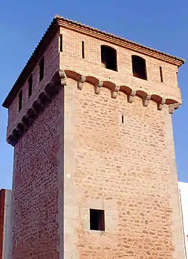 Según indica una loseta en su fachada, la construcción de la torre se concluyó en 1580. En principio, se cree que era utilizada como torre de vigilancia debido a las incursiones de los grupos de piratas y moriscos que desembarcaban para saquear las poblaciones cercanas a los núcleos cercanos a la costa. Es de planta rectangular y tiene unos 25 metros de altura, de mampostería de rodeno sin devastar con refuerzos bien tallados en las esquinas. Presenta tres cuerpos diferenciados: el primer cuerpo o base, tiene forma de pirámide truncada, el segundo, de 15 metros de altura y en forma de prisma de 8 x 6 metros es el bloque principal de la torre y en él se encuentran comprendidos los tres pisos; en el tercer cuerpo se encontraba una galería defensiva, siendo de mayor anchura que el segundo, estando sostenida por 32 módulos.