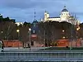 - Madrid Río, al fondo el CEDEX edificio del arquitecto Miguel Fisac