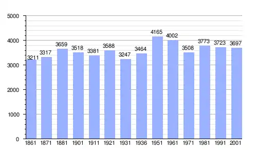 Gráfica de evolución demográfica de Gioia Sannitica entre 1861 y 2001 |