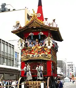 ![]() Carroza Naginata Hoko que porta al hijo de una conocida familia de Kioto. Está adornada con el ave fénix de oro. | ||