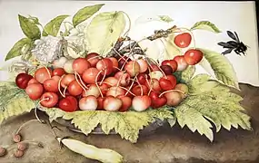 - Plato de cerezas con rosas, vaina y abejorro carpintero, Museo della Natura Morta, Poggio a Caiano