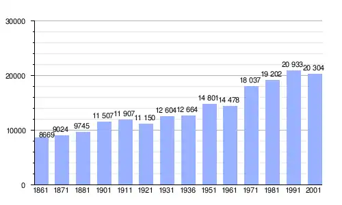 Gráfica de evolución demográfica de Giovinazzo entre 1861 y 2001 |