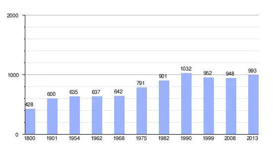 Los datos demográficos contemplados en este gráfico de la comuna de Girmont[4] se han cogido de 1800 a 1999 de la página francesa EHESS/Cassini, y los demás datos de la página del INSEE.[5]