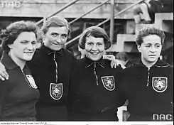 ![]() Gisela Mauermayer (segunda por la izq.) en el Campeonato Europeo de Atletismo de 1938 | ||
