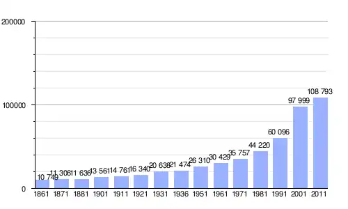 Gráfica de evolución demográfica de Giugliano de Campania entre 1861 y 2011 |