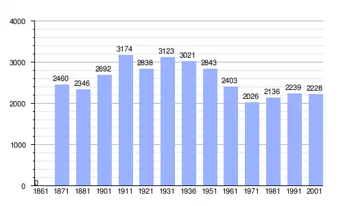 Gráfica de evolución demográfica de Giuliano di Roma entre 1861 y 2001 |
