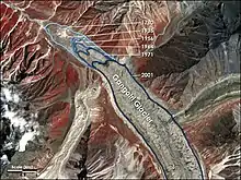 La NASA, junto con científicos del Servicio Geológico de Estados Unidos (USGS) y del Centro Nacional de Datos sobre Nieve y Hielo (NSIDC), está elaborando un inventario global de todos los glaciares del mundo para ayudar a los investigadores a seguir la historia de cada uno de ellos. Según ellos, el glaciar Gangotri, que actualmente tiene 30,2 km de largo y entre 0,5 y 2,5 km de ancho, es uno de los mayores del Himalaya. Este glaciar no ha dejado de retroceder desde que comenzaron las mediciones en 1780. Los datos de 61 años (1936-96) mostraron que el retroceso total del glaciar Gangotri fue de 1147 m, con una tasa media de 19 m por año.[2] Sin embargo, en los últimos 25 años del siglo XX ha retrocedido más de 850 metros (34 metros al año),[3] y 76 metros entre 1996 y 1999 (25 metros al año))[4][5]