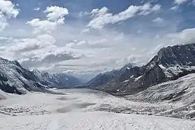 El glaciar Hispar (urdu: ہسپر گلیشر) es un glaciar de 49 km de largo en las montañas Karakoram de Gilgit-Baltistán, Pakistán, que se une al glaciar Biafo, de 67 km de largo, en el paso Hispar La, a una altitud de 5.128 m, para crear el sistema glaciar más largo del mundo fuera de las regiones polares.