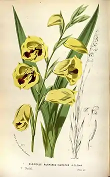 - «Gladiolus papilio». Conservatorio y Jardín Botánico de Ginebra: Flora africana. Consultado el 9 de abril de 2015.