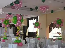 - Otro uso, muy extendido y usado en países de todo América, es el de la decoración con globos, considerada por algunos como un arte. Se considera que la decoración con globos y la globoflexia son dos ramas diferenciadas que interactúan entre sí.