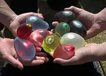 - Un juego popular entre los niños consiste en llenar los globos de agua y arrojárselos para hacerlos estallar en su cuerpo. La habilidad consiste en esquivar los misiles enviados por los compañeros.
