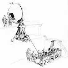 El globo detalla un mapa de la superficie de la Tierra en el exterior y un mapa de las constelaciones con símbolos astrológicos y mitológicos en su interior. Girado por un sistema hidráulico, es capaz de reproducir el “movimiento” de los cielos ante un espectador sentado dentro de la esfera en la penumbra. Es un predecesor de los modernos planetarios.