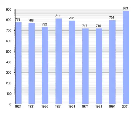 Gráfica de evolución demográfica de Glorenza entre 1921 y 2001 |