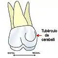 - Tubérculo de Carabelli (o protostilo): es una cúspide accesoria en lado lingual (interno) del molar superior.