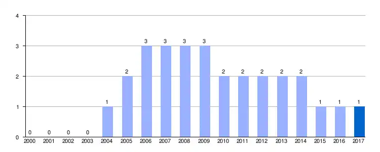 Gráfica de evolución demográfica de Gobantes entre 2000 y 2017 |