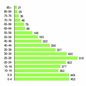- Población en 2010: 4 497 habitantes,[4] de los cuales 2.001 son mujeres y 2.496 son varones.